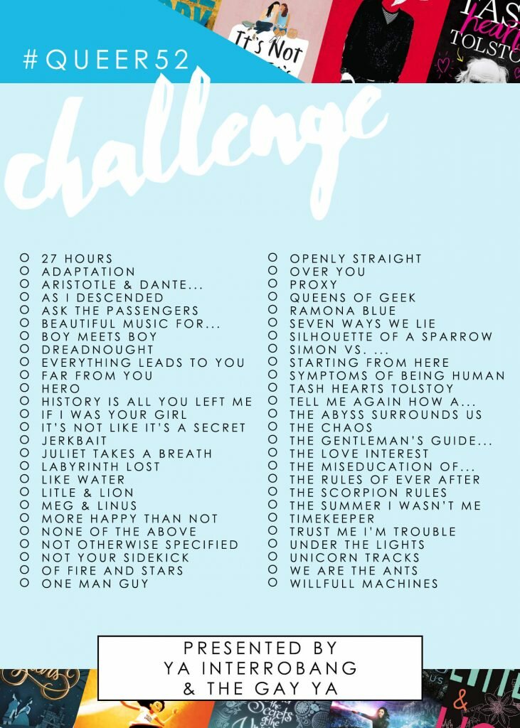 - For The Avid Reader: Read all 52 queer YA books by the end of the year.